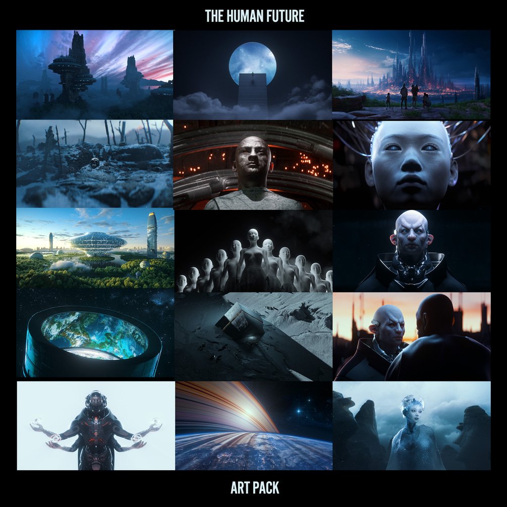 120 High Quality 4K Images from the short film THE HUMAN FUTURE: A Case for Optimism, by melodysheep. Also includes over 150 A.I. generated faces depicting futuristic descendants of human beings.